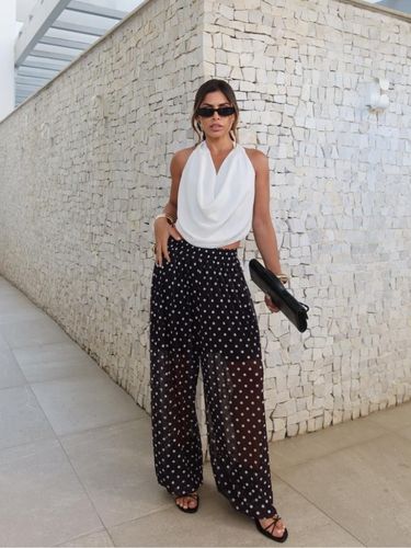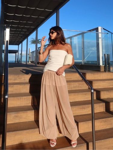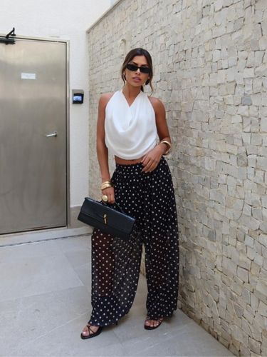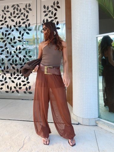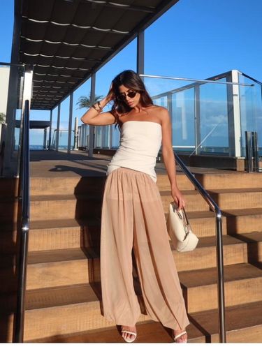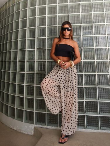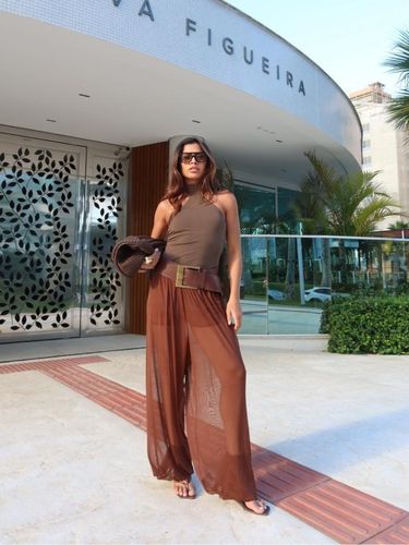Com cintura alta e elástica, se adapta bem ao corpo, valorizando a silhueta sem apertar. É uma peça versátil, que transita facilmente entre produções casuais e sofisticadas — perfeita para usar com rasteiras, saltos ou sandálias finas.