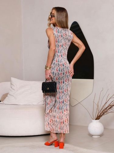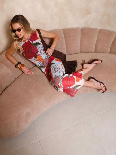 Um vestido regata, midi, confeccionado em tule, é uma peça elegante e delicada. O tecido em tule proporciona um visual leve e fluido, enquanto o forro garante conforto e opacidade. A estampa exclusiva confere um toque de sofisticação e originalidade à peça, tornando-a única. O comprimento midi oferece um equilíbrio perfeito entre elegância e descontração, ideal para diversas ocasiões. Com seu corte regata, o vestido valoriza os ombros e adiciona um ar moderno ao visual.